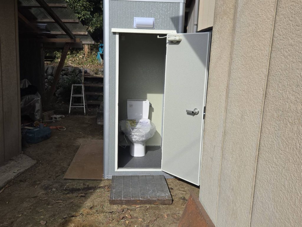 段差の小さい屋外ユニットトイレを購入しました。これによって、浄化槽転換工事における仮設トイレ使用時の段差による事故のリスクが大幅に低減されることが期待できます。